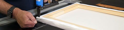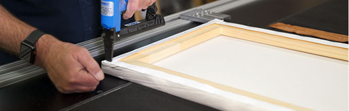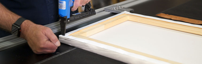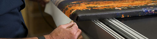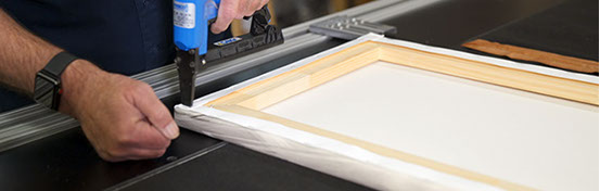 Our capabilities for framing and canvas stretching are unmatched in the Black Hills. We routinely do large format printing on canvas for artists and photographers. We build canvas stretching bars ranging from 5/8" deep to 2" deep. Larger structures are reinforced at the corners and middle. Gallery wraps are created on our 8 ft. pneumatic stretching machine.